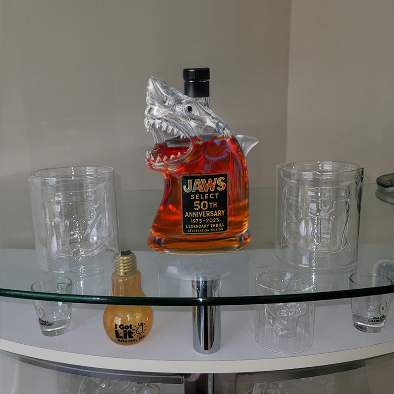 For movie buffs, collectors, and anyone who loves a great conversation piece—this is it. The 50th Anniversary “Migilife Bruce the Shark” Whiskey Bottle is more than just a container. It’s a cinematic tribute, crafted in the fearsome shape of the great white shark that changed film forever.
